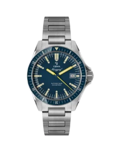 The Sub 200 Caribbean channels the daring spirit of the sea with a sleek 42 mm (approx) 316L stainless-steel case, a domed sapphire crystal echoing the curves of vintage plexiglass and a crisp navy-blue dial that evokes tropical depths. Water resistant to 200 metres (20 ATM), it features a unidirectional rotating bezel and Super-LumiNova® treated dial and bezel markers for high-visibility in low-light or underwater conditions.