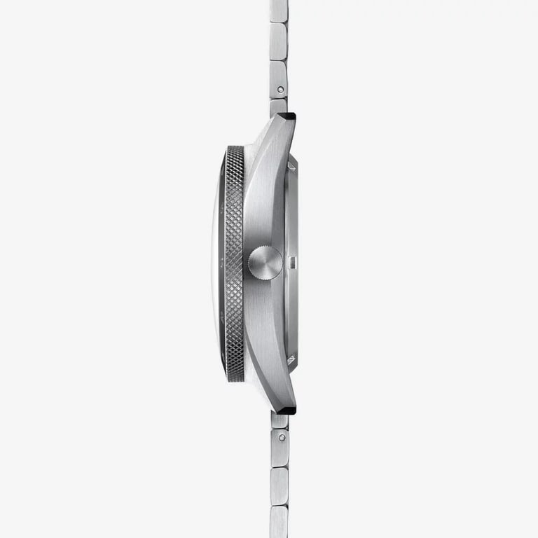 The stainless steel bracelet with block links is another interesting choice, as it resembles the classic oyster stainless steel bracelet, but the more simplified version is a step closer to a minimalist look—the look we’re used to from Sternglas. The butterfly clasp provides a touch of elegance and comfortable wear.